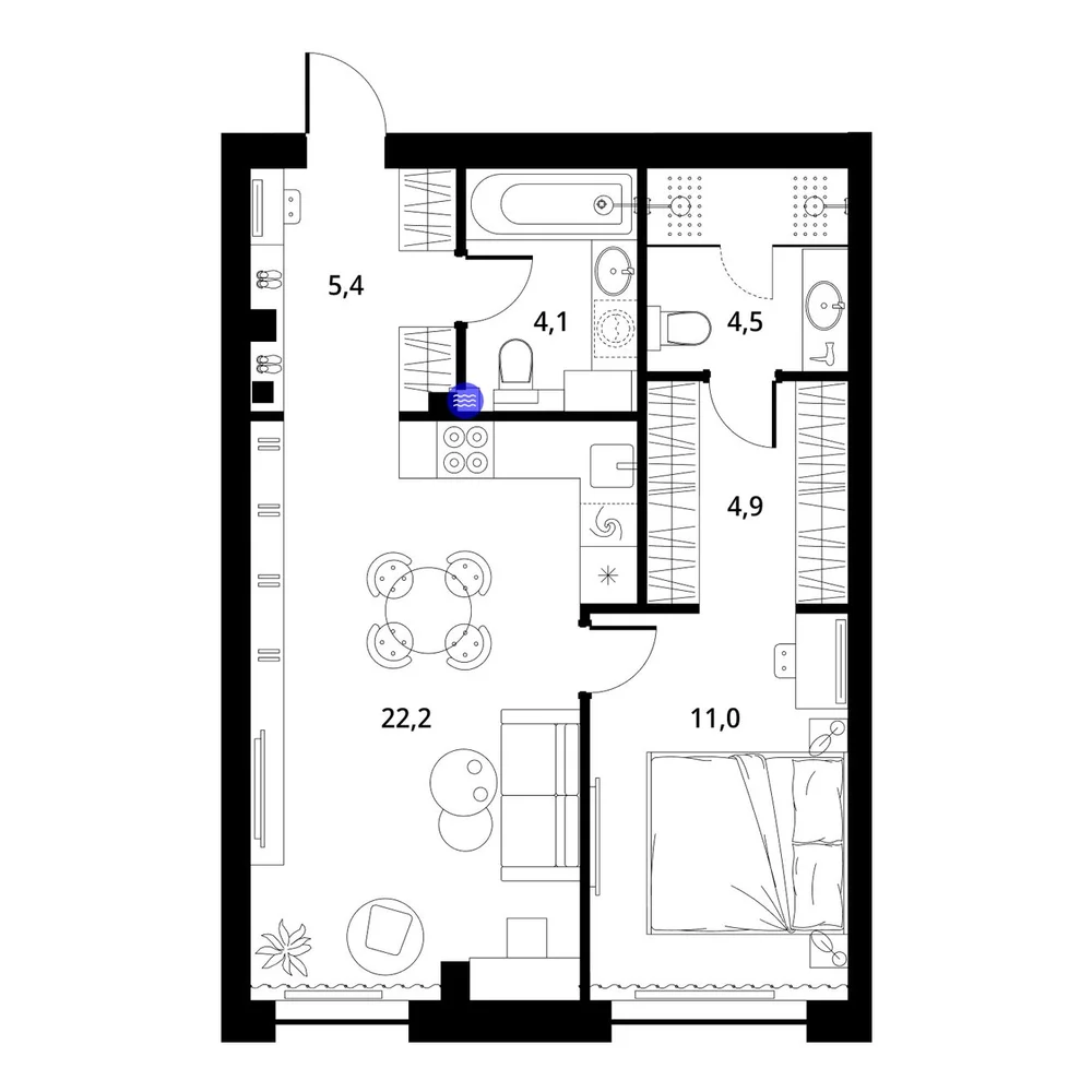 1-комнатная 50.2 м